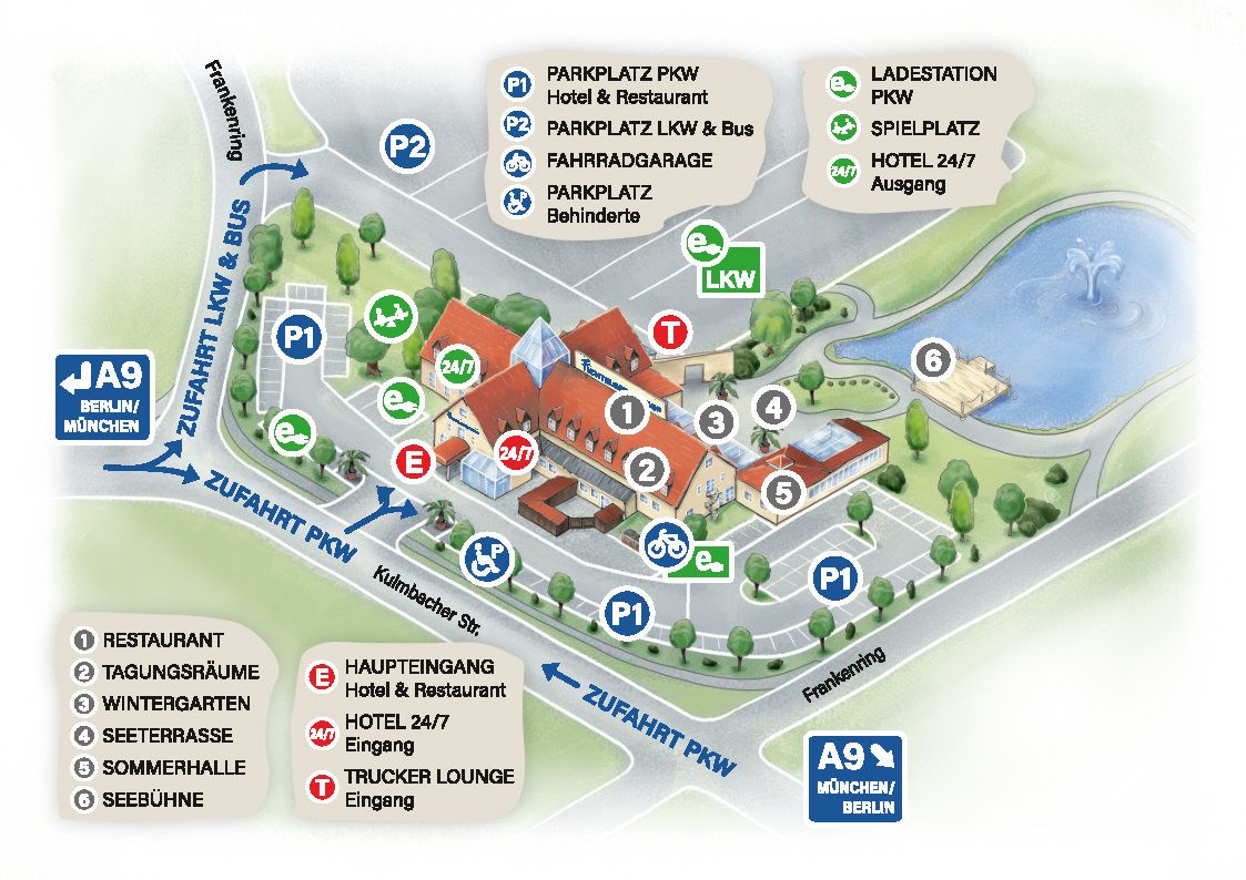 Top-Lage an der A9 & A70:direkt an der Ausfahrt gelegen, ist unser Standort optimal erreichbar.